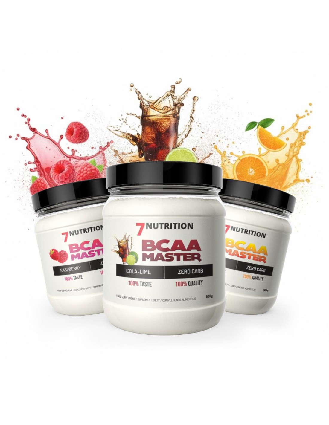 BCAA MASTER de 7Nutrition es una fórmula avanzada que aporta aminoácidos de cadena ramificada (BCAA) en proporción 2:1:1 junto con L-glutamina y malato de citrulina.