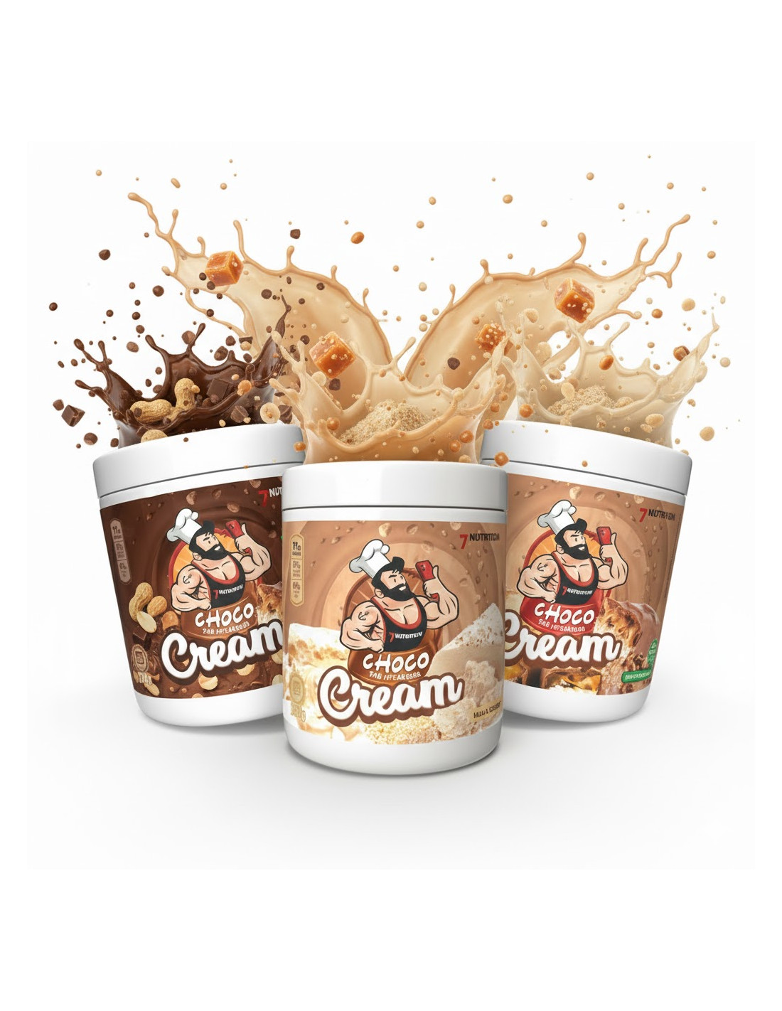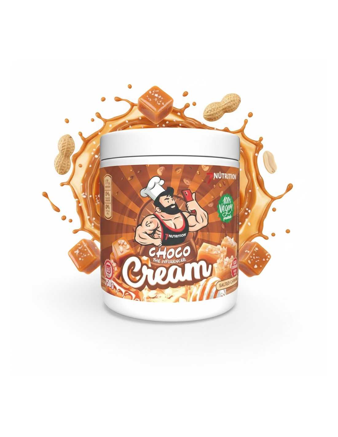 Cream Choco The Influencer de 7Nutrition es una línea de cremas untables elaboradas sin aceite de palma y sin azúcar añadido. Están endulzadas con maltitol y combinan frutos secos seleccionados con ingredientes como coco, cacao o caramelo.