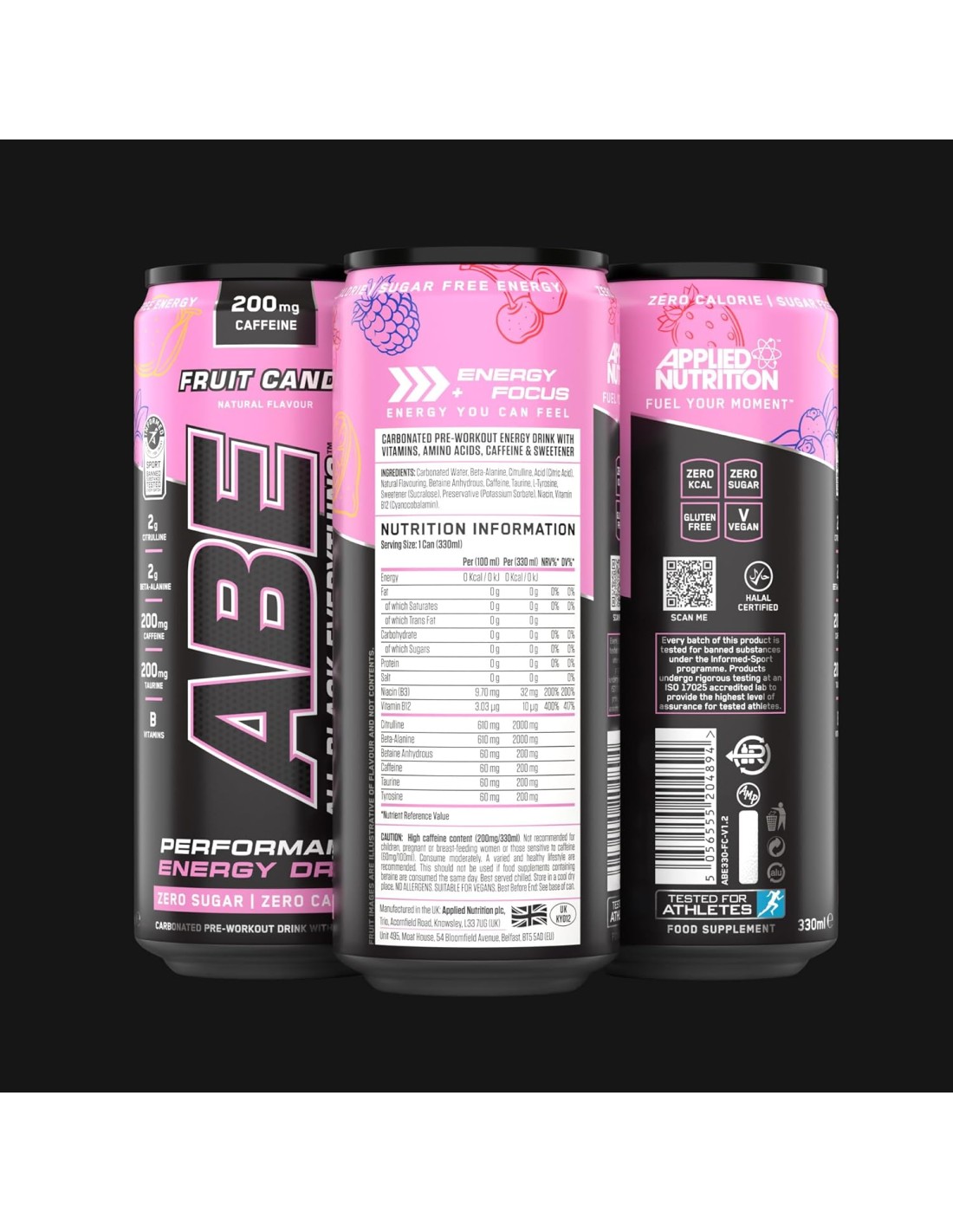 ABE Performance Energy Drink es la versión en lata del preentreno más vendido del Reino Unido. Esta bebida carbonatada sin azúcar ni calorías está formulada para mejorar el enfoque, la energía y el rendimiento físico.