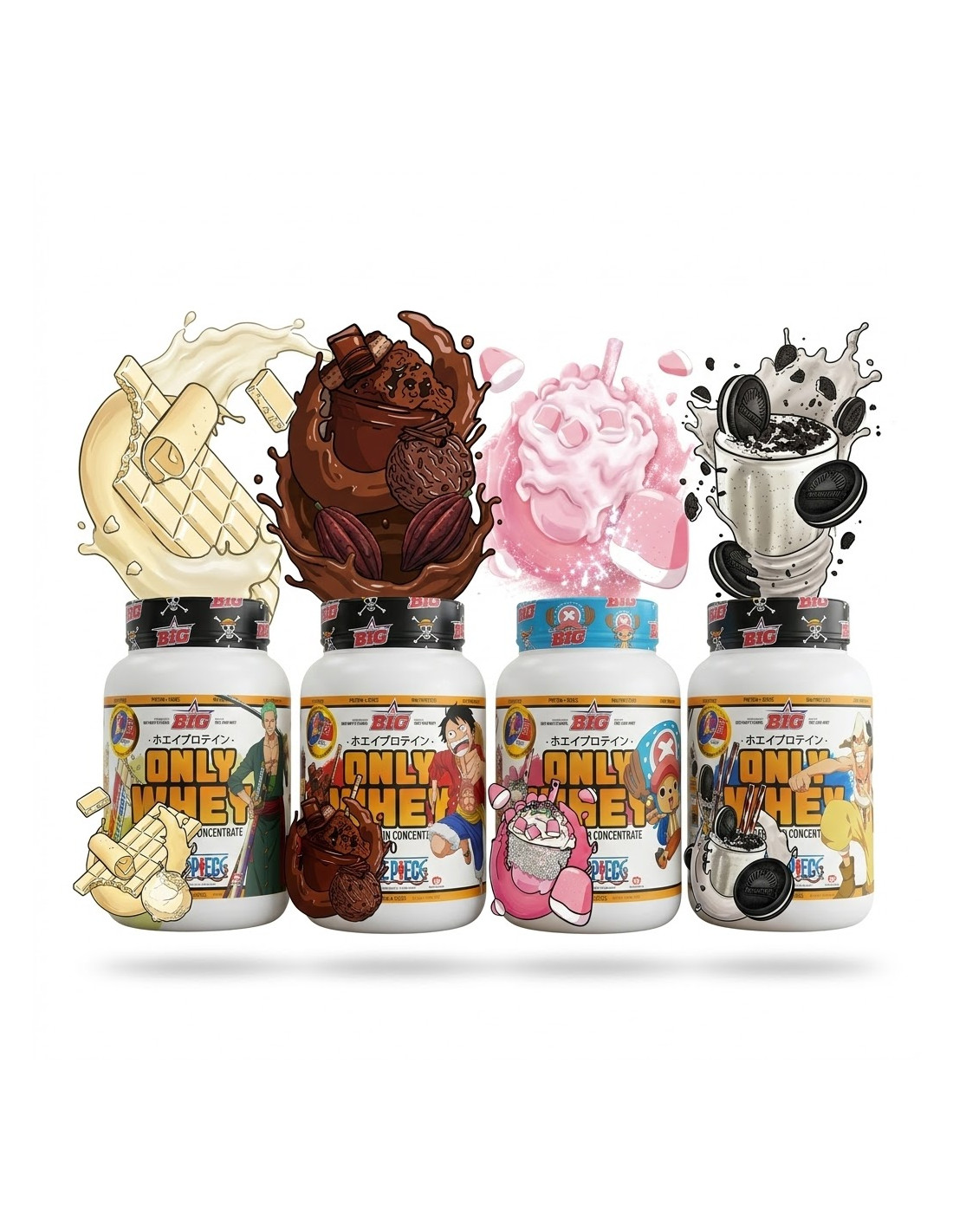 ONLY WHEY ZERO ONE PIECE® Original de BIG® es una proteína de suero concentrada desarrollada bajo co-branding oficial con ONE PIECE®. Su fórmula incorpora Lacprodan® SP-8011, una de las materias primas más reconocidas por su pureza, perfil de aminoácidos y excelente solubilidad.