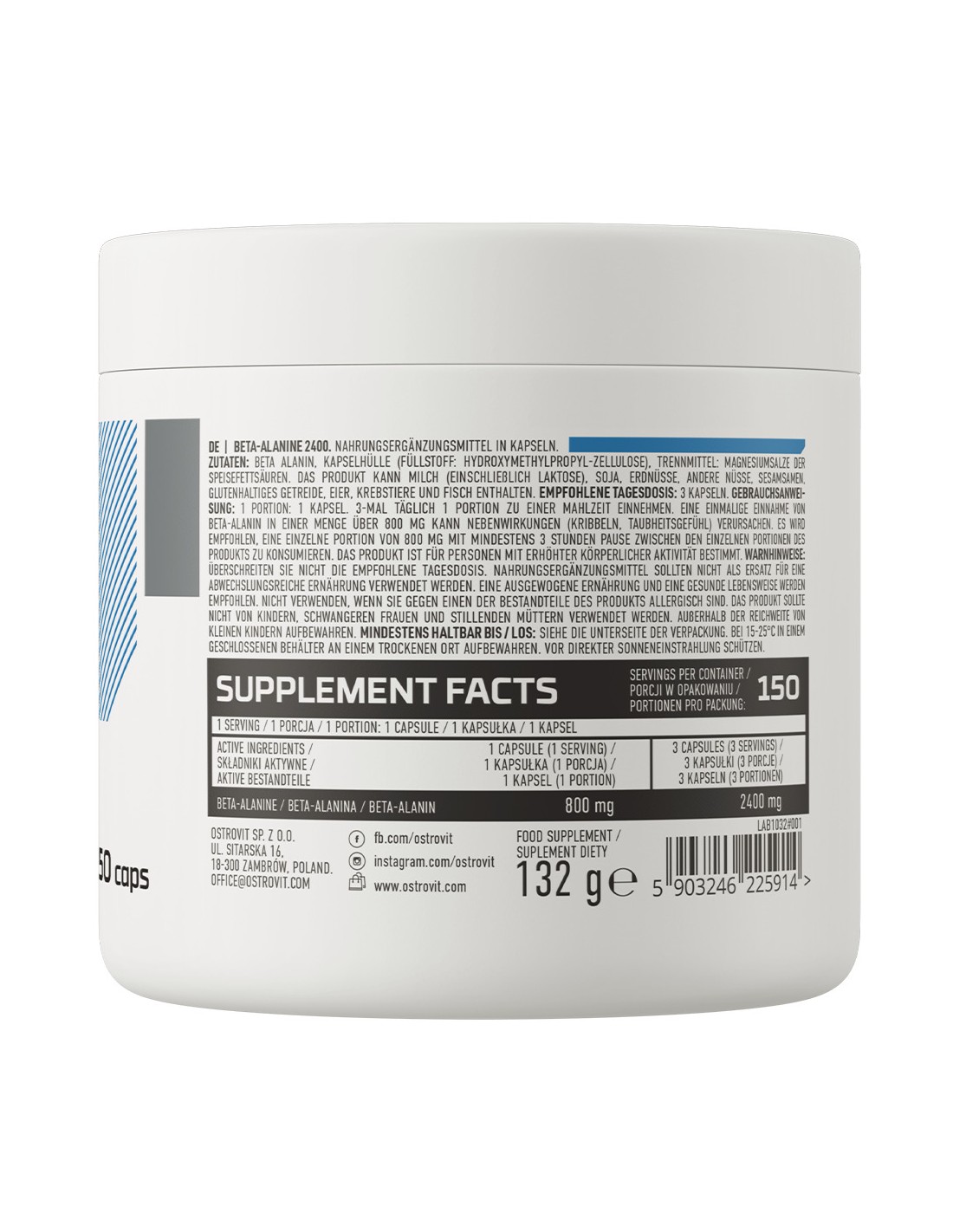 OstroVit Beta-Alanine 2400 mg 150 cápsulas es un complemento alimenticio de alta calidad formulado para quienes buscan mejorar su resistencia y capacidad de entrenamiento. La beta-alanina es un aminoácido endógeno que, junto con la L-histidina, actúa como precursor de la carnosina, un dipéptido presente principalmente en las células musculares.