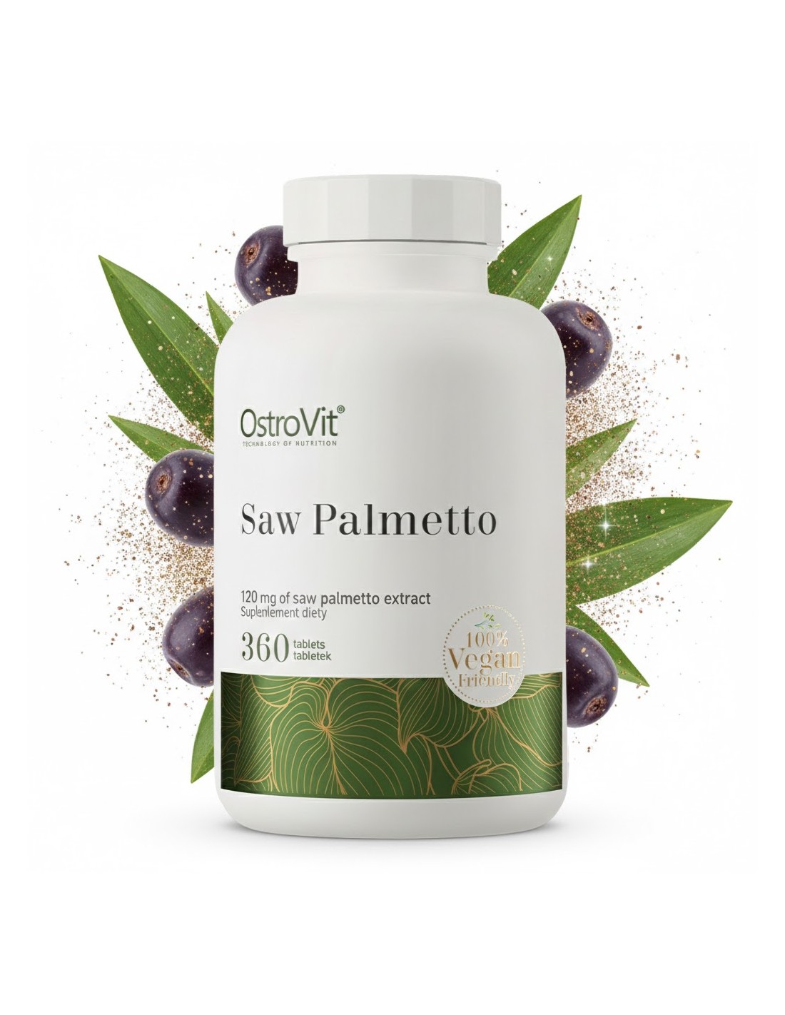 OstroVit Saw Palmetto es un complemento alimenticio de alta calidad que contiene extracto del fruto de la palma enana americana (Serenoa repens), una planta tradicionalmente utilizada para apoyar la salud prostática y el correcto funcionamiento del sistema urinario masculino.