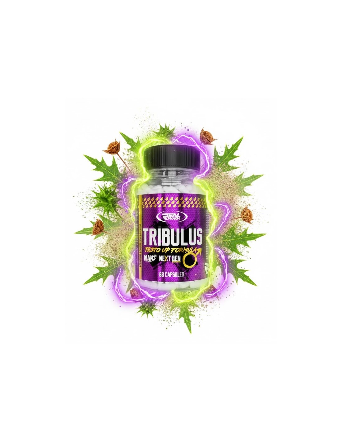Tribulus de Real Pharm es un complemento alimenticio en cápsulas elaborado con extracto de Tribulus terrestris estandarizado en saponinas, utilizado tradicionalmente para apoyar la vitalidad y el bienestar general en personas físicamente activas.