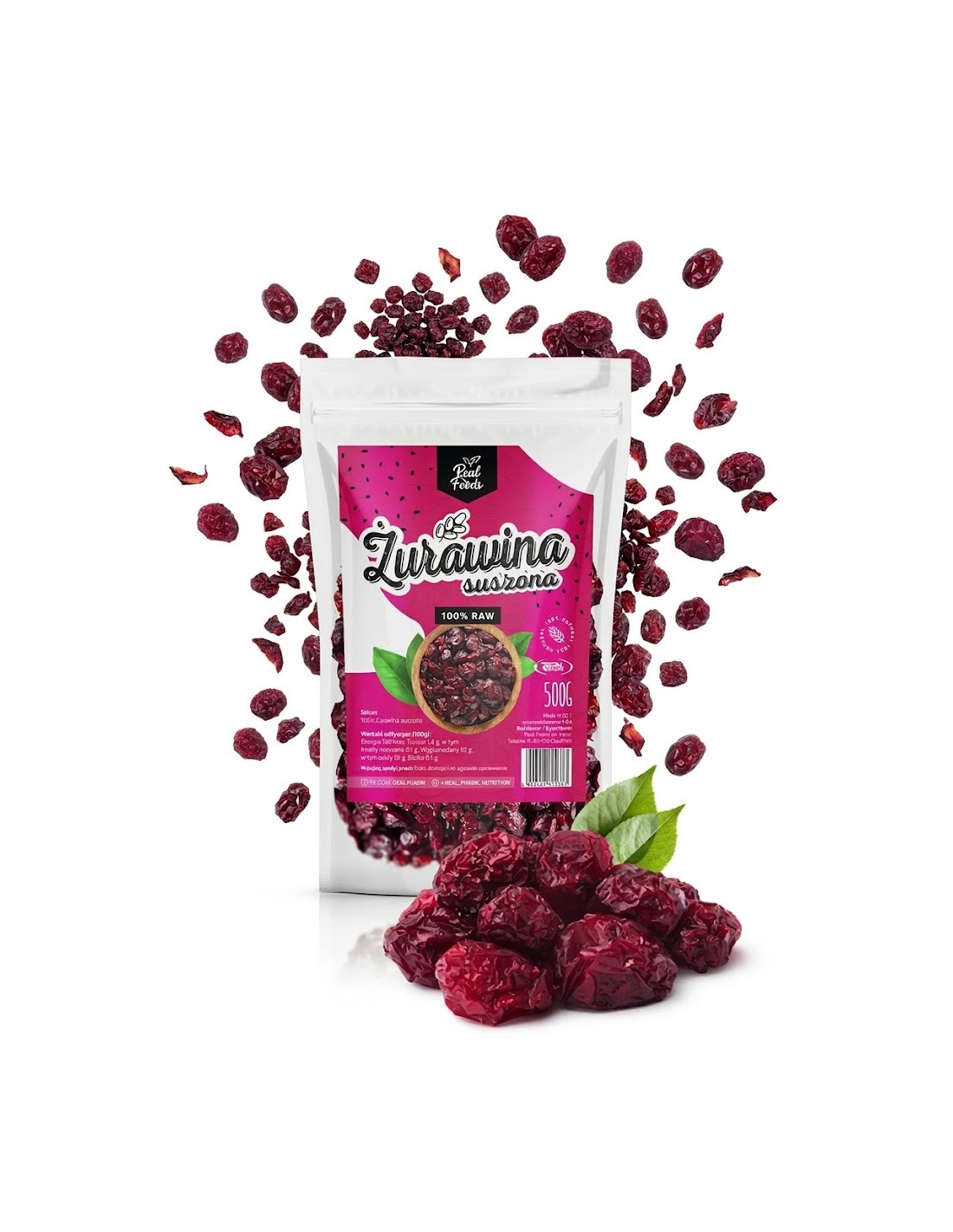 Żurawina Suszona 500 g de Real Pharm son arándanos rojos deshidratados, una alternativa cómoda y versátil para tener siempre a mano en la despensa. Su sabor combina un toque afrutado con matices dulces y ligeramente ácidos, por lo que encajan tanto en desayunos como en meriendas o elaboraciones caseras.