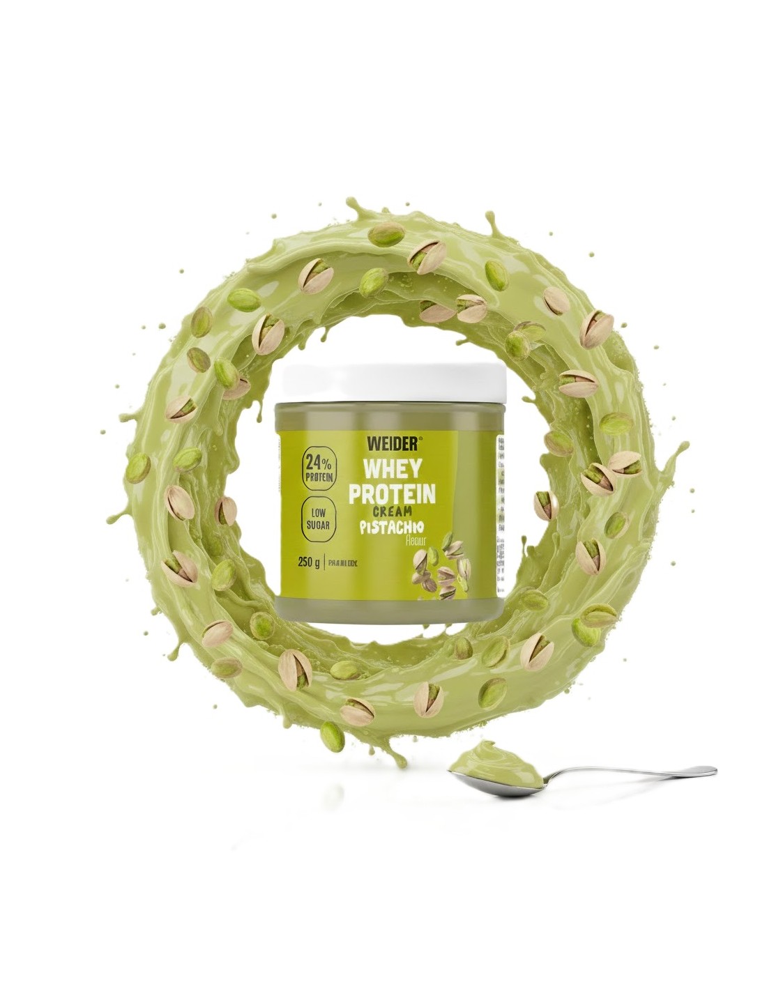 Whey Protein Cream Pistachio de Weider es una crema hiperproteica premium elaborada con auténticos pistachos y proteína de suero de alta calidad, perfecta para quienes buscan disfrutar de un sabor irresistible sin renunciar a una alimentación equilibrada.